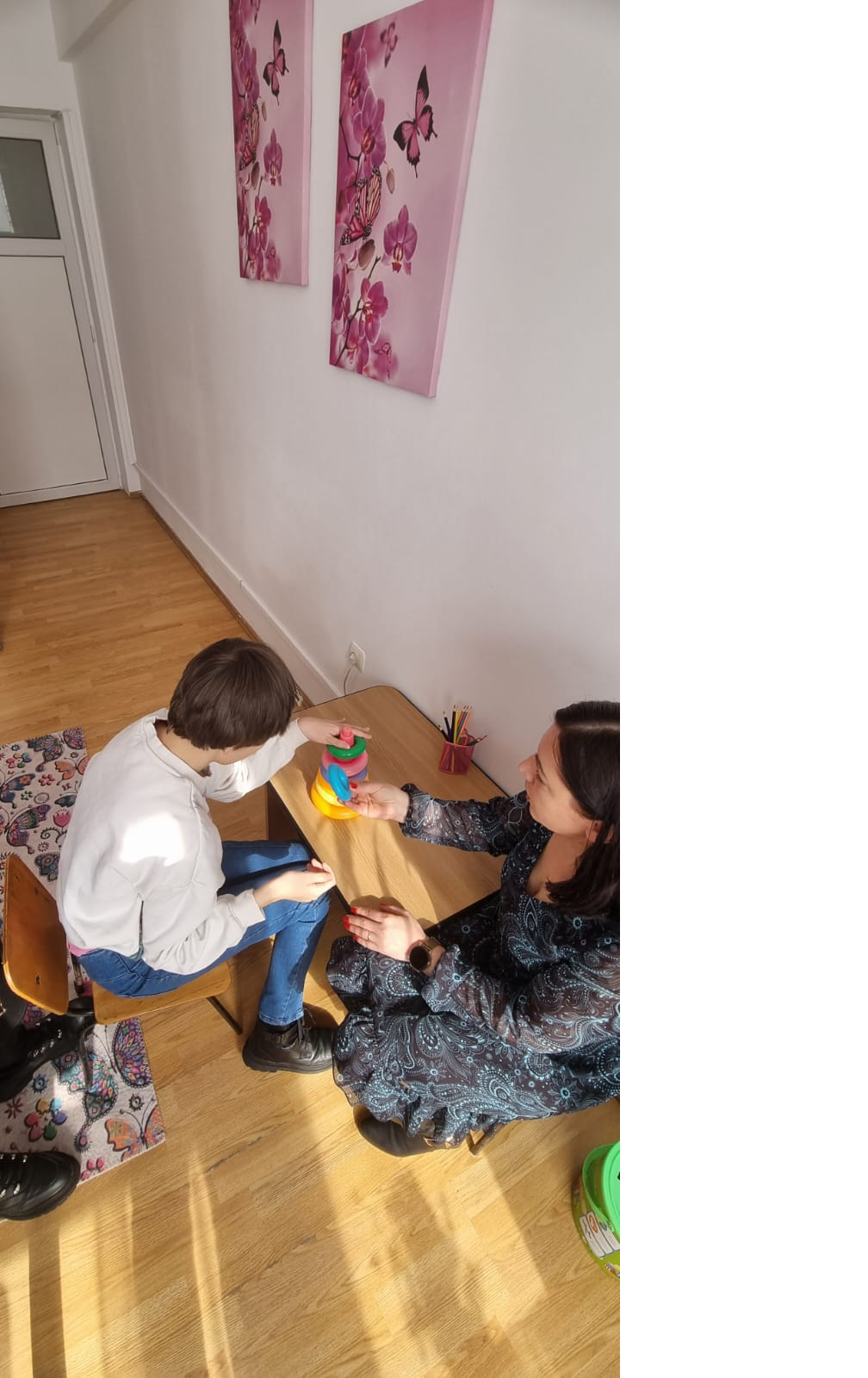 Ședințele se desfașoară într-un cabinet amenajat corespunzător, într-un cadru plăcut și relaxant, copiii având condiții optime pentru corectarea deficiențelor de vorbire și stimularea - dezvoltarea optimă a limbajului.